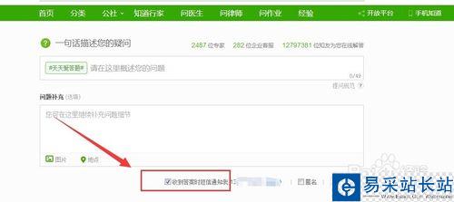 5、如果你不想要手機(jī)收到消息,那么你在提問(wèn)的時(shí)候,可以將手機(jī)前面這個(gè)勾去掉即可或者是在個(gè)人資料里面設(shè)置一下,將通過(guò)短信接收答案勾去掉。