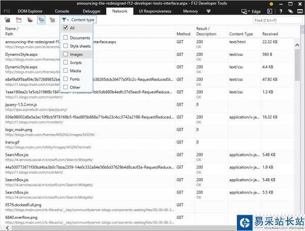 最后,Spartan還會帶來最新的調試工具(按下F12鍵),便于大家查看頁面代碼和快速查找漏洞;以及最新改進后的網絡工具,支持捕獲與調試網絡流量(比如自啟動、內容類型過濾、以及高亮顯示錯誤)。
