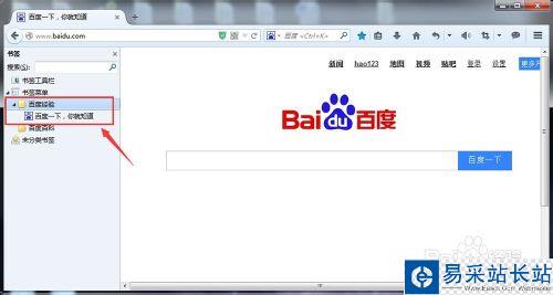 7、最后我們再看下分類書簽下剛剛添加的收藏,在工具欄【書簽】下拉菜單中點擊【查看書簽側(cè)欄】,在瀏覽器的左邊就可以看到分類書簽下的網(wǎng)頁了,如圖所示: