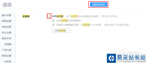 6、如果平常上班比較老實(shí),也可以點(diǎn)擊老板鍵左側(cè)的對(duì)號(hào)取消老板鍵功能,如下圖所示。