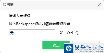 5、點(diǎn)擊下方的【設(shè)置老板鍵】,可以彈出老板鍵設(shè)置窗口,可設(shè)置任意按鍵作為老板鍵,但是不建議設(shè)置某一個(gè)按鍵作為老板鍵快捷鍵,因?yàn)槿绻俅蜃謺r(shí)摁到這個(gè)鍵時(shí)瀏覽器會(huì)自動(dòng)隱藏,因此建議設(shè)置一個(gè)組合按鍵,比如ctrl+Q。