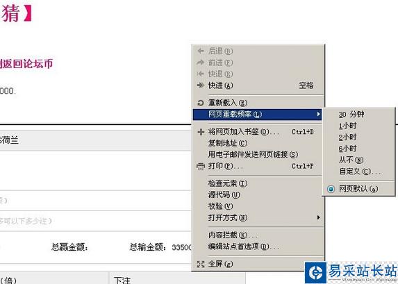 2、之后我們在打開的頁面,空白處,點擊右鍵,找到網(wǎng)頁重新載率(自動刷新速度設(shè)置)移動到該指令上,可以看到有30分鐘、一小時等時間給我們選擇