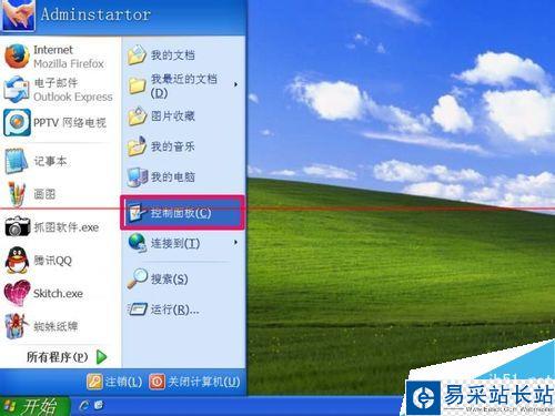 3,如果桌面上沒有IE圖標,也可以從開始菜單中,打開“控制面板”程序。