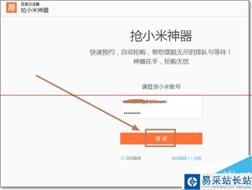 2、點(diǎn)擊“搶”圖標(biāo),進(jìn)入小米賬號(hào)登陸界面,將登陸設(shè)置保存,以便搶購(gòu)的時(shí)候調(diào)用快速。爭(zhēng)取時(shí)間。