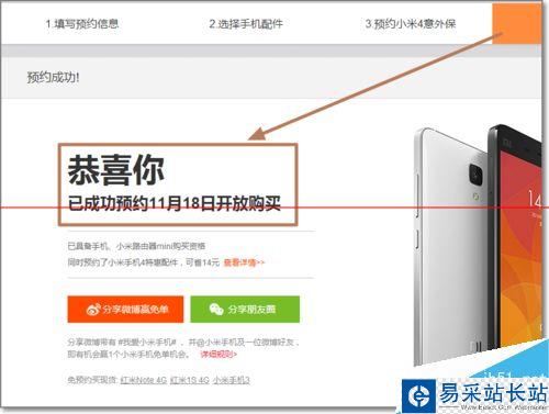 5、信息填寫(xiě)完成并提交,自動(dòng)跳到完成界面,顯示預(yù)約成功,并提醒在什么時(shí)間可以去搶購(gòu),注意設(shè)置提醒自己,不然到了時(shí)間忘記了。