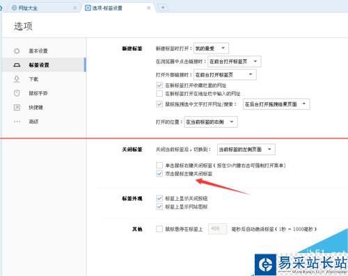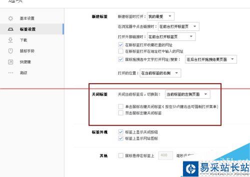 6、然后我們切換到,標簽設置了,我們在關閉標簽這里做一下設置。