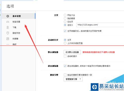 5、我們在左邊看到好多的選項設置,我們找到的標簽設置,這是我們要選擇的