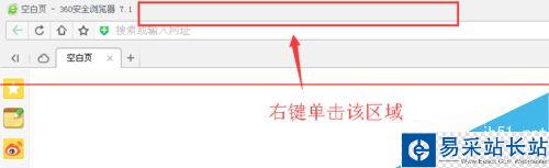 3、如果打開瀏覽器的時候,沒有找到該按鈕,需要在瀏覽器最上方的空白處點擊右鍵