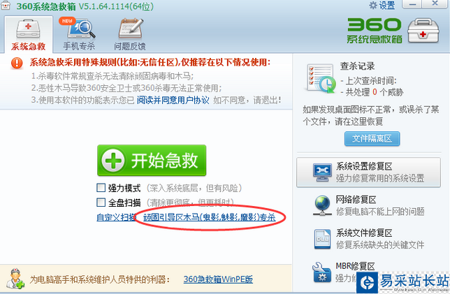 2、選擇“頑固引導區木馬專殺”,按提示進行操作