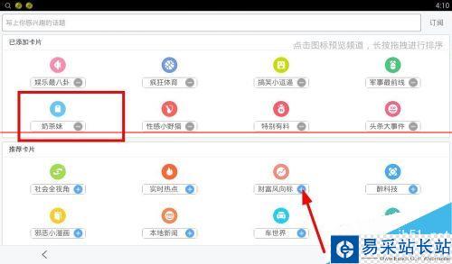 7、看看,我們剛才的卡片是不是就添加成功了呢,其實我們是可以直接添加百度瀏覽器,推薦的卡片,下圖的位置,點一下就是了!