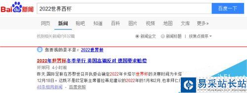 第一,在瀏覽器中輸入"www.baidu.com"進(jìn)入百度搜索,輸入你想要搜索的信息,這里我輸入的是“2022世界西杯”