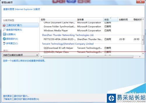 6、如重置IE后,仍出現無法正常工作現象,那肯定是加載項有與IE有沖突,導致異常,在第二步選擇管理加載項,將所有不確認的加載項都刪除或禁用。如遇到無法刪除或禁用的加載項可以進windows安全模式進行清除,這幾步下來能解決所有的該類報類。