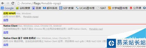 2、打開chrome,在地址欄輸入 chrome://flags/#enable-npapi ,敲回車,將“啟用NPAPI”下的狀態修改為“啟用”