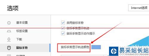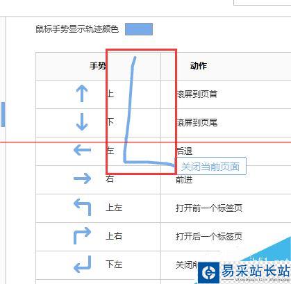 5、點擊【鼠標手勢】后,就可以進行設置了。設置【軌跡顏色】就在上方