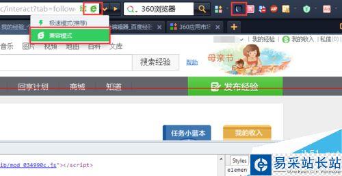 6、需要注意的是,夜間模式只在【極速模式】有效果,如果選擇【兼容模式】(IE內(nèi)核)是沒有效果的。