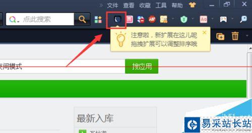 1、打開360瀏覽器,在緊靠【搜索框】的右邊找到擴(kuò)展插件按鈕并點(diǎn)擊。