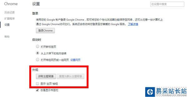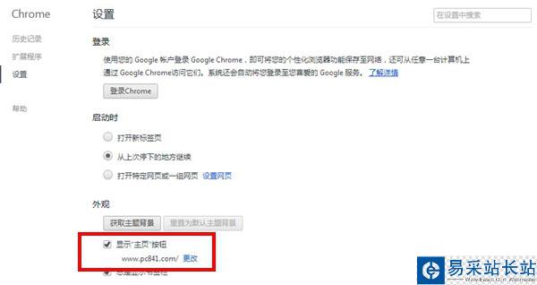 5、谷歌瀏覽器的設置菜單初看起來比較復雜,但是相比其他的瀏覽器還是比較簡潔的,我們找到外觀一項,我們看到里面有顯示主頁按鈕,把這個勾選上