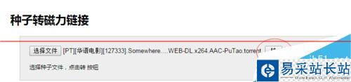 2、先舉個例子如何進行種子轉磁力鏈接。在網頁中點擊“選擇文件”,然后在你的電腦中將已經存在的種子選中即可。