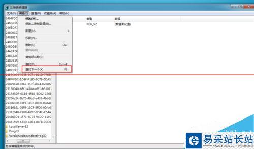 2、運行后進入注冊表窗口,在菜單編輯中選擇查找功能
