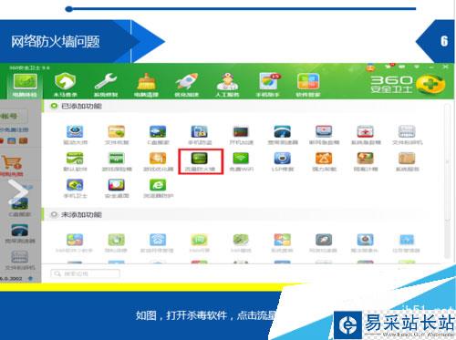 如圖,打開殺毒軟件,點擊流量防火墻。