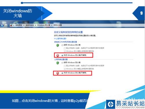 如圖,點擊關(guān)閉windows防火墻,這時查看p2p能否連接上KAD網(wǎng)絡(luò)或ed2k服務(wù)器。