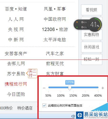 (二)在瀏覽器右下角,點(diǎn)擊放大鏡圖標(biāo)(瀏覽器縮放功能)。
