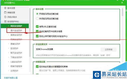 5、點擊安全防護模式以后再右面會彈出一個新的窗口,有個選項,看片模式使用360看片保鏢瀏覽器