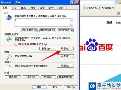 3、進入到瀏覽器Internet選項之后,我們要設置的內容就在常規之中。在界面中,有個瀏覽歷史記錄,我們在這里點擊設置按鈕。