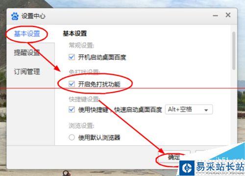 3、在【設置中心】界面下,點擊選擇【基本設置】--勾選【開啟免打擾功能】--【確定】選項完成設置 。(如圖所示)