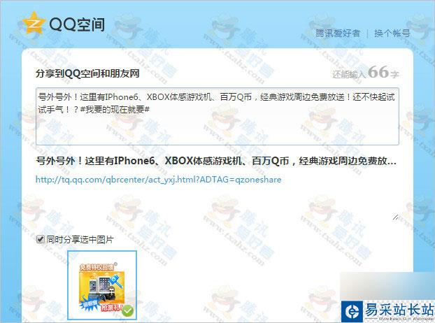 3、會彈出分享到QQ空間的按鈕,直接關閉便可。