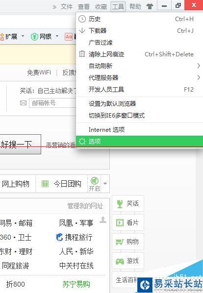 1、啟動360安全瀏覽器,點擊選擇程序界面右上菜的功能區里的【工具】選項。(如圖所示)