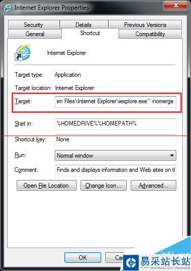 3、在”目標“欄中,增加”-nomerge“參數,并點確認按鈕,如圖: