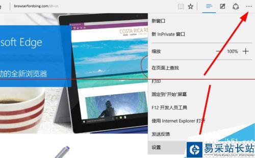 1、在Edge瀏覽器點擊右上角的“更多操作”按鈕,然后選擇“設置”