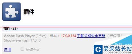 5、待新版本uc瀏覽器發布之后,建議恢復插件試試,不行停用即可,無需從新安裝adobe flash player。