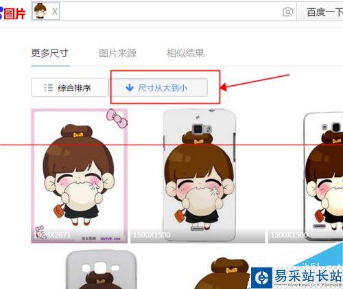 4、進來之后點擊尺寸【從大到小】排序,最前面的就是最大的圖片,也就是最清晰的。我選擇這一張圖片,尺寸是1200*1540的。