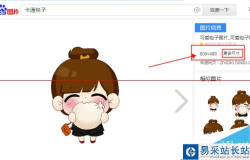 3、右邊可以看到這張圖片的尺寸是800*480尺寸的,我一般喜歡找最清晰的圖片。點擊【更多尺寸】。