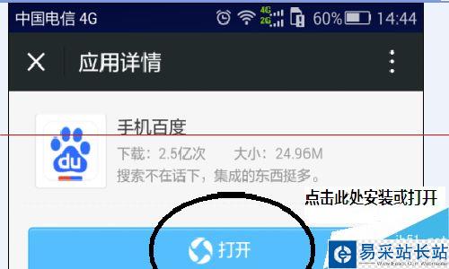 3、已經(jīng)安裝手機(jī)百度應(yīng)用軟件的,可以直接打開。未安裝手機(jī)百度軟件的進(jìn)行安裝。