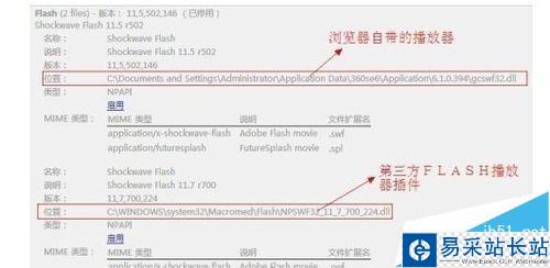 1、如果在plugins中,看到多個Flash版本。這在舊版本的Google Chrome瀏覽器中,會有這種情況。