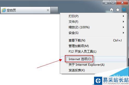 1、打開IE瀏覽器,找到菜單欄中的“工具-- internet選項” 如果沒有菜單,按下ALT鍵