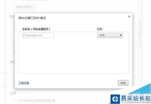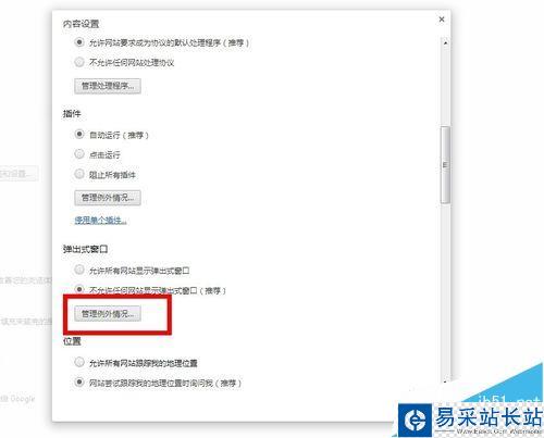 6、如果你只想要允許特定網站彈出窗口,請在“彈出式窗口”部分,選擇“管理例外情況”。輸入你不希望 Chrome 自動攔截的網站列表。