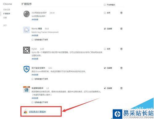 6、點(diǎn)擊 底部 的“獲取更多擴(kuò)展程序”