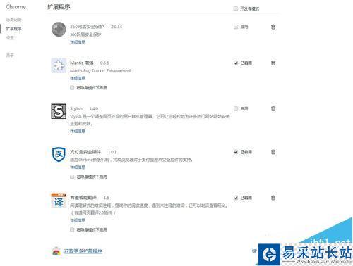 5、這時候會顯示您已經(jīng)安裝的擴(kuò)展程序