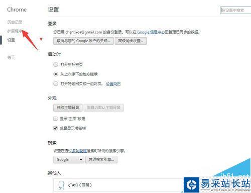 4、在打開的頁面中選擇左側(cè)的“擴(kuò)展程序”菜單