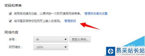 3、在密碼和表單這一項下在點擊管理密碼
