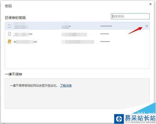 4、點擊右邊的那個叉叉就可以完成刪除。把你不要的項都刪除了。下次進入這個網站的時候就會提示你輸入密碼。而不是自動填上去的。