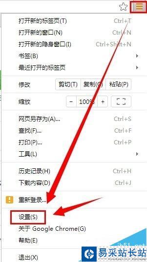 1、打開google chrome瀏覽器右上角處的三橫按鈕,然后再點擊設置。