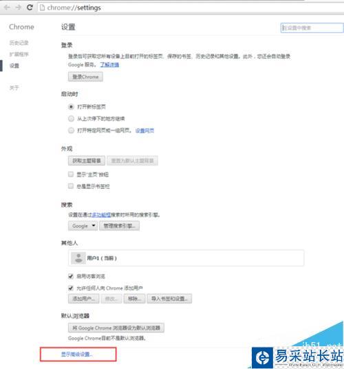 進(jìn)入谷歌瀏覽器選項(xiàng)設(shè)置,找到設(shè)置---高級(jí)設(shè)置。