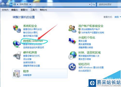 2、點擊網絡和interest。(點擊控制面板之后也有很多選項,把查看方式設置為類別,這樣選項會變的少很多就比較容易找了,注意不要點擊到網絡和interest下面的兩個小項。