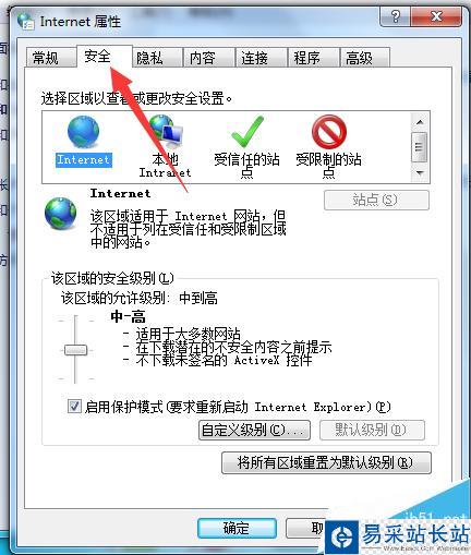 4、點擊安全,把級別降低如果不行下一步。