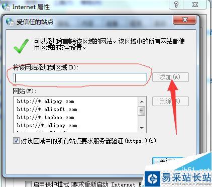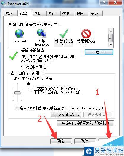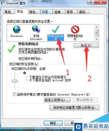 1、點擊受信任站點,再點擊站點,